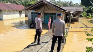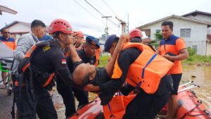 Respon Cepat Brimob Kalbar Melakukan Evakuasi Terhadap Masyarakat Yang Terdampak Banjir