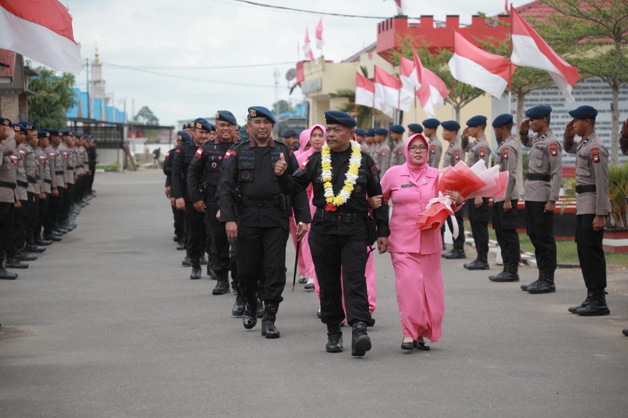 Dansatbrimob Polda Kalbar memimpin langsung pelaksanaan acara pelepasan purna bhakti personel Satbrimob Polda Kalbar. Jum’at (14/02/25).