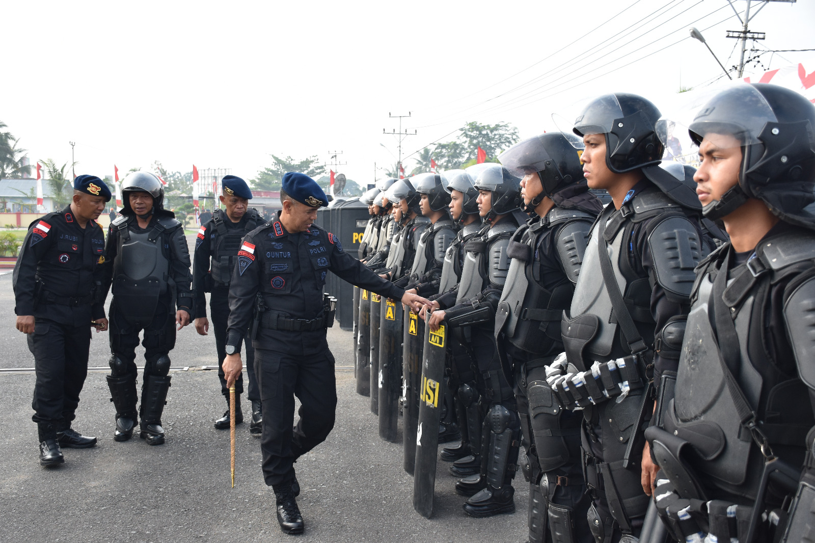 Apel gelar pasukan dan perlengkapan dalam rangka kesiapan pengamanan pemilu 2024 Satbrimob Polda Kalbar. Rabu (16/08/23).