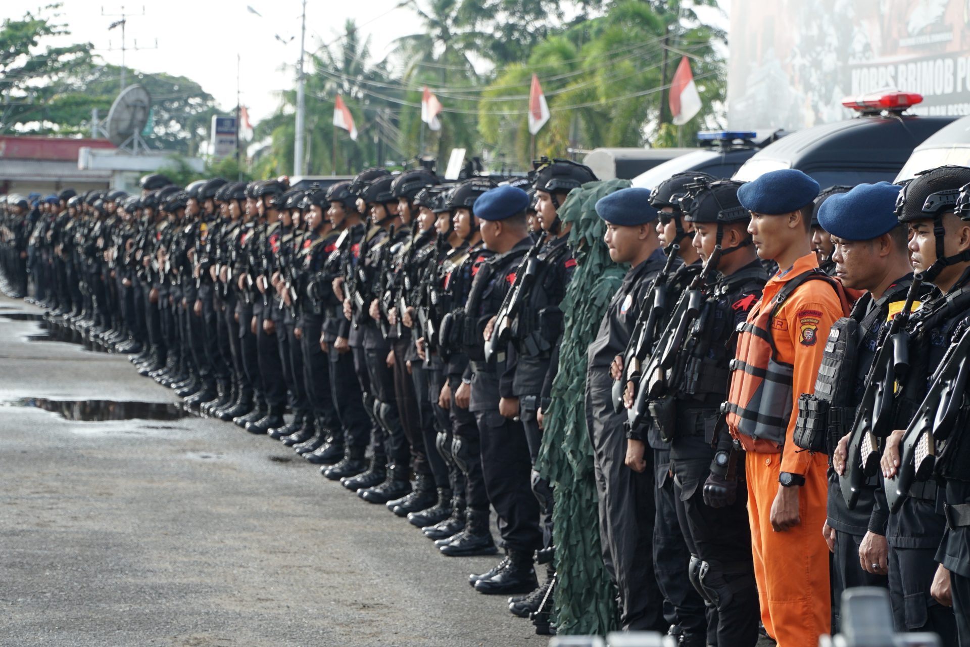 Dalam rangka mengecek kesiapan personel dan perlengkapan yang dimiliki oleh satuan menjelang pemilu 2024 Satbrimob Polda Kalbar kembali melaksanakan menggelar apel gelar pasukan dan perlengkapan yang dilaksanakan di Mako Satbrimob Polda Kalbar. Apel gelar pasukan dan perlengkapan ini dipimpin langsung oleh Dansatbrimob Polda Kalbar Kbp M. Guntur, S.I.K., M.H. dan diikuti oleh seluruh pejabat utama serta personel Satbrimob Polda Kalbar. Kegiatan apel gelar pasukan dan perlengkapan pagi hari ini Dansatbrimob Polda Kalbar mengecek seluruh kesiapan personel maupun perlengkapan yang dimiliki oleh satuan mulai dari mengecek kesiapan personel dalam menguasai perlengkapan, kebersihan perlengkapan dan kesiapan kendaraan dinas yang dimiliki oleh satuan yang nantinya akan digunakan pada saat pengamanan dilapangan. Didalam amanatnya pada pelaksanaan apel gelar pagi hari ini Dansatbrimob Polda Kalbar menekankan kepada seluruh personel untuk tetap menjaga netralitas mereka serta bijak dalam menggunakan media sosial. Beliau juga memerintahkan kepada para komandan untuk menunjuk personel dan melatih mereka agar nantinya pada pelaksanaan tugas dilapangan mereka sudah siap dan untuk mencegah terjadinya kesalahan prosedur pada saat penindakan dilapangan. Sebelum menutup amanatnya pada kegiatan apel gelar pasukan dan perlengkapan pagi hari ini beliau juga mengucapkan banyak terimakasih kepada seluruh personel baik itu yang hadir pada pelaksanaan apel gelar di Mako Satbrimob Polda Kalbar maupun jajaran personel Satbrimob Polda Kalbar yang berada didaerah.