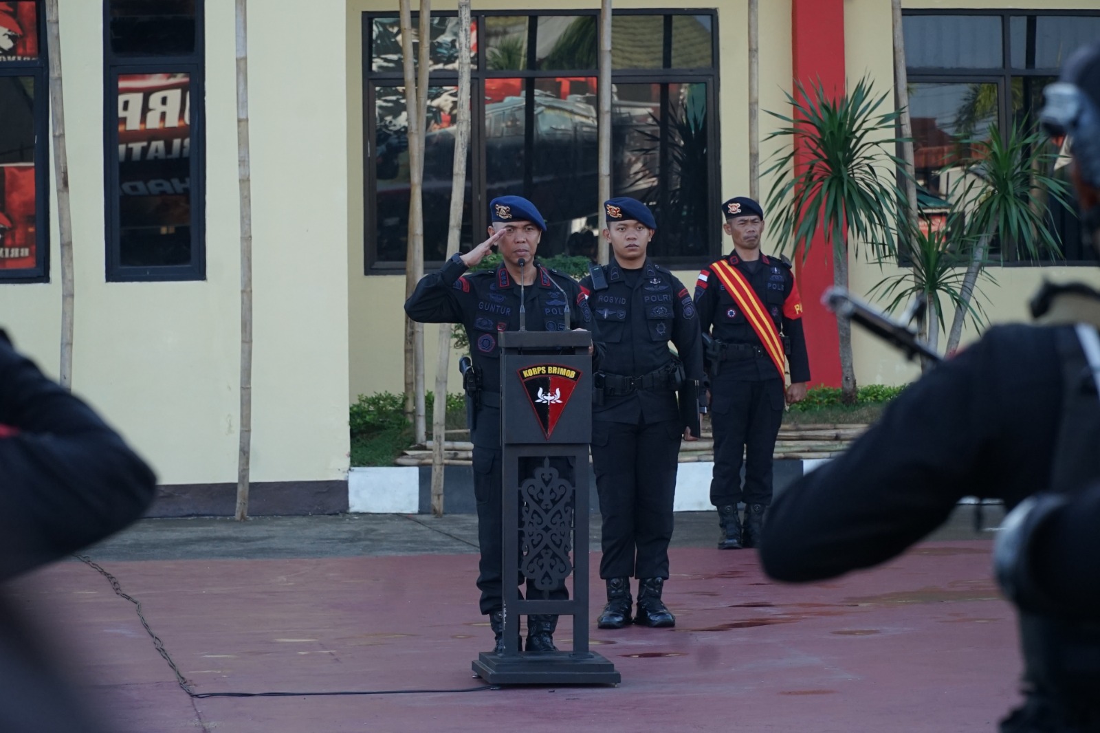 “Terimakasih sebelumnya saya ucapkan kepada kalian semua yang berada didepan saya atas semangat yang kalian tunjukan pada pelaksanaan apel kesiapsiagaan pagi hari ini. Ada beberapa hal yang ingin saya sampaikan pada pagi hari ini yang pertama saya tidak bosan-bosanya mengingatkan kalian semua untuk selalu melaksanakan tugas dengan penuh rasa tanggung jawab. Kedua saya minta kepada kalian semua termasuk kepada para perwira untuk selalu merawat dan menjaga kendaraan dinas dan almatsus yang kita miliki. Ketiga saya tekankan kepada kalian semua tanpa terkecuali untuk menjaga nama baik institusi kita dengan cara tidak melakukan pelanggaran sekecil apapun dan yang terakhir saya ucapkan banyak terimakasih kepada kalian semua atas kerja keras dan dedikasi yang kalian lakukan selama pelaksanaan tugas dilapangan sehingga wilayah hukum Polda Kalbar tetap kondusif hingga sampai saat ini” ucap Dansatbrimob Polda Kalbar Kbp M. Guntur, S.I.K., M.H..