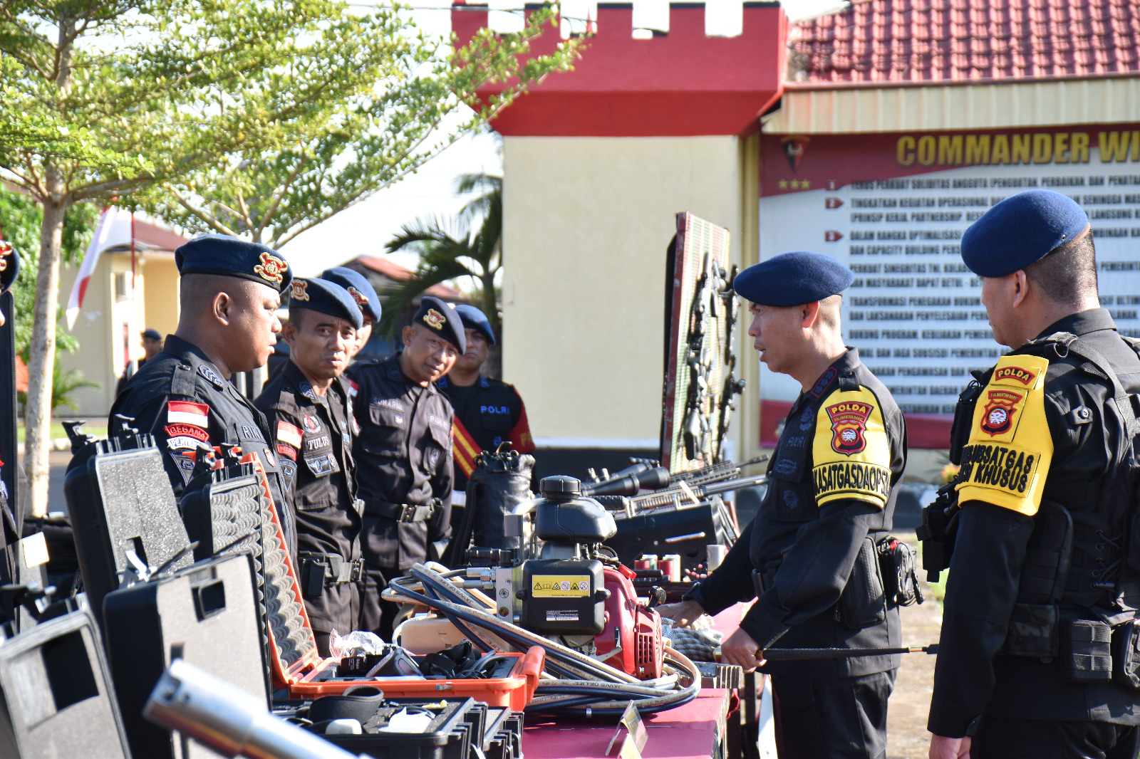 Memasuki penghujung tahun seperti sekarang ini curah hujan di Provinsi Kalbar cukup tinggi yang menyebabkan beberapa kota dan kabupaten terendam banjir. Mengantisipasi jatuhnya korban akibat banjir Satbrimob Polda Kalbar kembali melaksanakan apel gelar pasukan dan peralatan yang dilaksanakan di Mako Satbrimob Polda Kalbar yang beralamat di Jl. Adisucipto, Kec. Sungai Raya, Kab. Kubu Raya. Kegiatan pelaksanaan apel gelar pasukan dan peralatan pagi hari ini dipimpin langsung oleh Dansatbrimob Polda Kalbar Kbp M. Guntur, S.I.K., M.H. dan diikuti oleh seluruh personel Satbrimob Polda Kalbar. Dikesempatan apel gelar pasukan dan peralatan kali ini Dansatbrimob Polda Kalbar turun langsung mengecek almatsus dan kendaraan dinas yang dimiliki oleh Satbrimob Polda Kalbar untuk turun langsung memberikan bantuan dilokasi terjadinya banjir. Selain melakukan pengecekan terhadap almatsus dan kendaraan dinas dikesempatan pagi hari ini Dansatbrimob Polda Kalbar juga mengecek sejauh mana pengetahuan personel dalam menguasai almatsus dan kenadaraan dinas yang nantinya akan digunakan pada saat memberikan bantuan dilokasi terjadinya banjir. Sebelum mengakhiri apel kesiapsiagaan pagi hari ini ada beberapa penekanan yang disampaikan oleh Dansatbrimob Polda Kalbar kepada personel dan para perwira Satbrimob Polda Kalbar yang pertama beliau meminta kepada seluruh perwira untuk melatihkan terus tentang penggunaan almatsus yang dimiliki oleh Satbrimob Polda Kalbar sehingga nantinya pada saat personel berada dilapangan mereka sudah terbiasa. Kedua beliau meminta kepada seluruh personel untuk menjaga kesehatan diri mereka masing-masing sehingga apabila dibutuhkan sewaktu-waktu mereka selalu siap dan yang terakhir beliau mengucapkan banyak terimakasih kepada seluruh personel atas pelaksanaan tugas selama ini sehingga situasi kamtibmas diwilayah hukum Polda Kalbar tetap kondusif hingga sampai detik ini.