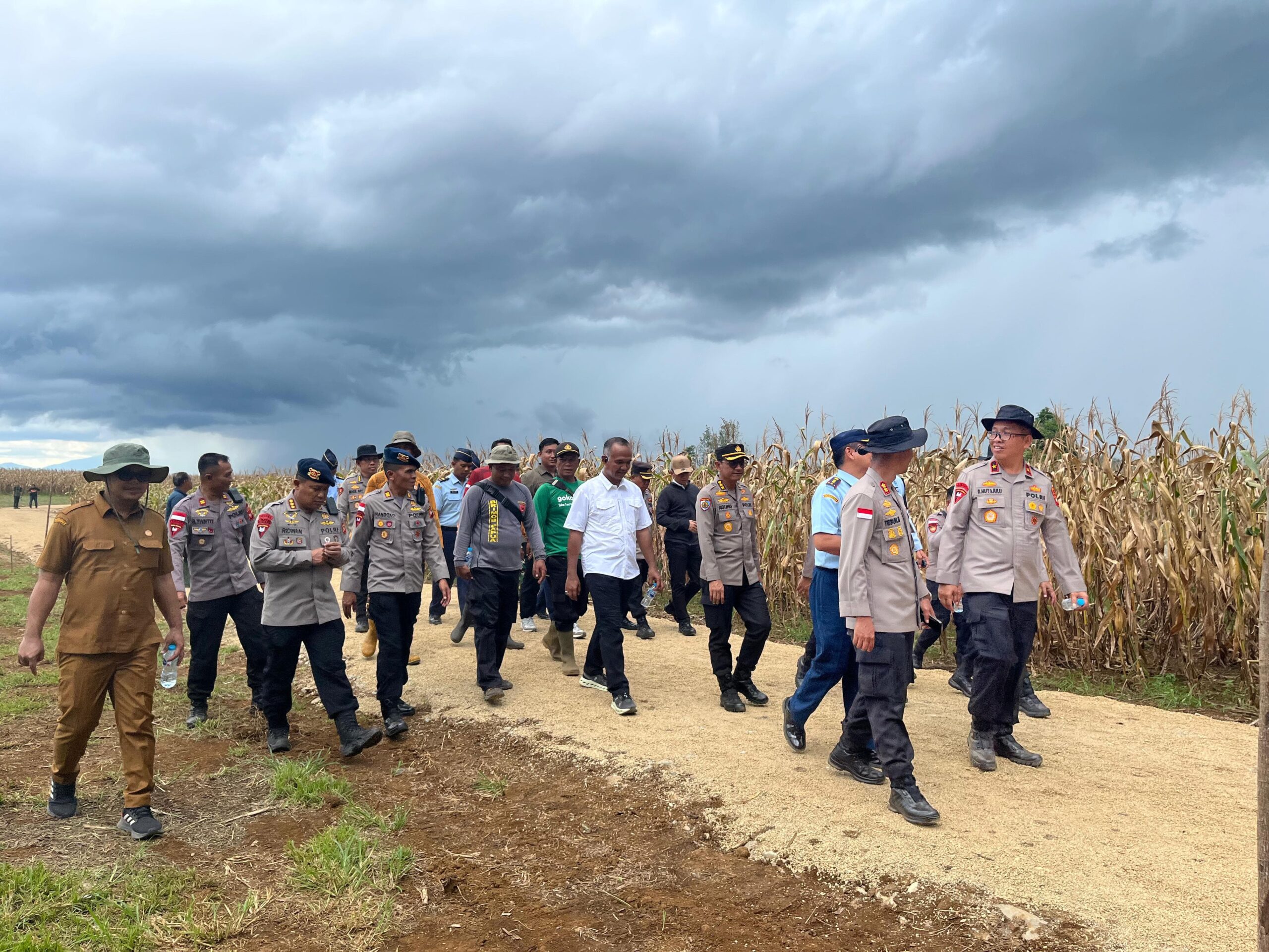 Wakapolda Kalbar Bersama Dansatbrimob Polda Kalbar Lakukan Pengecekan Lokasi Panen Raya Jagung Kuartal II