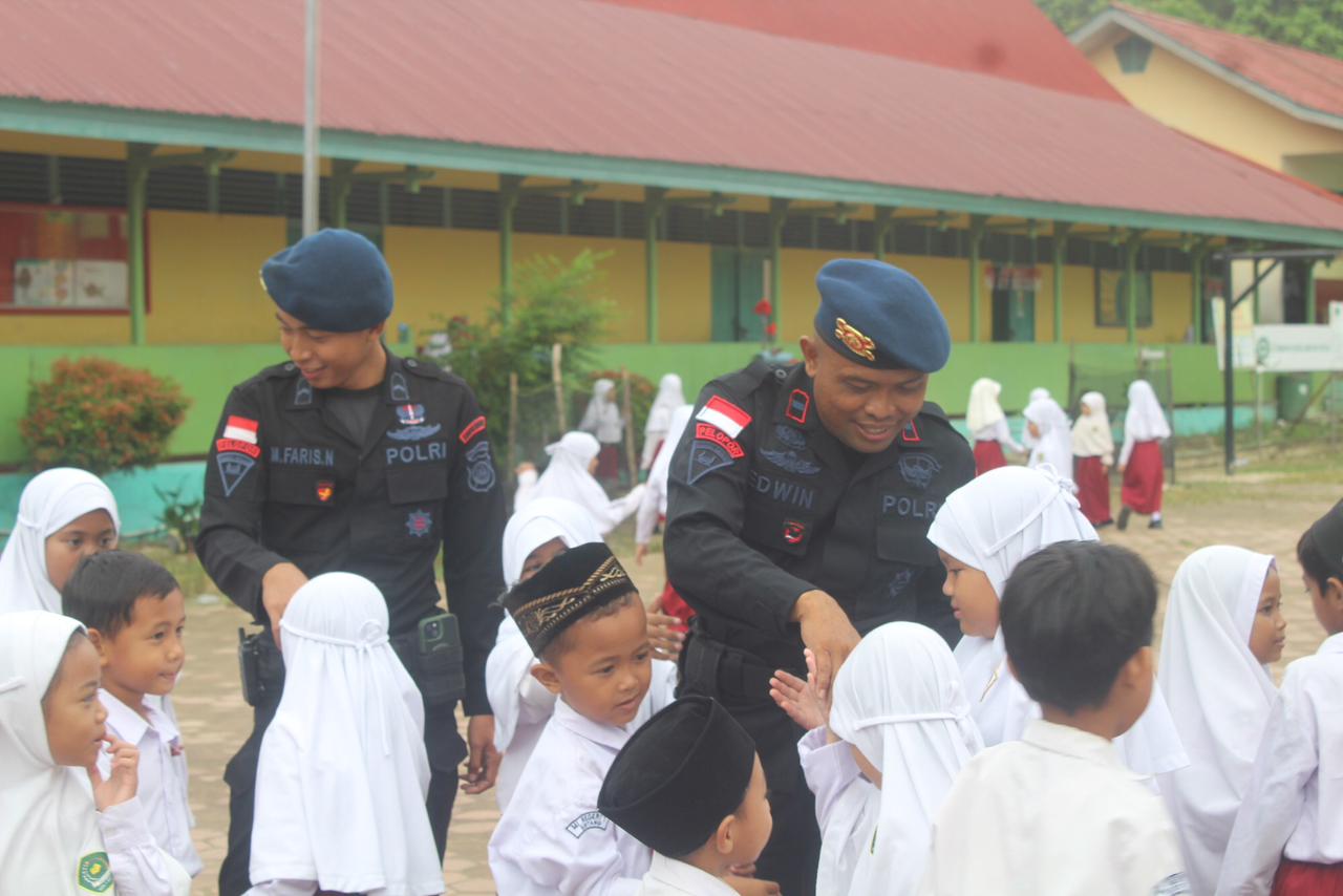 Demi menciptakan generasi penerus bangsa yang mengerti akan makna dari Pancasila Satbrimob Polda Kalbar terus melaksanakan kegiatan Brimob Go To School di sekolah-sekolah di Provinsi Kalbar. Kegiatan Brimob Go To School minggu ini sasarannya adalah Madrasah Ibtidaiyah yang beralamatkan Jl. Akcaya II, Tj. Puri, Kec. Sintang, Kab. Sintang. Kegiatan Brimob Go To School minggu ini masih sama seperti minggu-minggu sebelumnya yaitu personel dan para murid mengawali kegiatan dengan melaksanakan upacara bendera yang kemudian baru dilanjutkan dengan kegiatan inti yaitu memberikan edukasi kepada para murid tentang pentingnya menerapkan nilai-nilai yang terkandung didalam Pancasila dikehidupan keseharian mereka serta pentingnya menjauhi narkoba demi masa depan mereka. Selain memberikan edukasi pentingnya penerapan nilai-nilai yang terkandung didalam Pancasila serta bahaya narkoba bagi masa depan para murid disini personel Satbrimob Polda Kalbar juga memberikan edukasi sedikit tentang bullying kepada para murid mengingat diera sekarang ini marak terjadi kasus bullying dilingkungan sekolah yang kerap kali banyak menimbulkan korban.