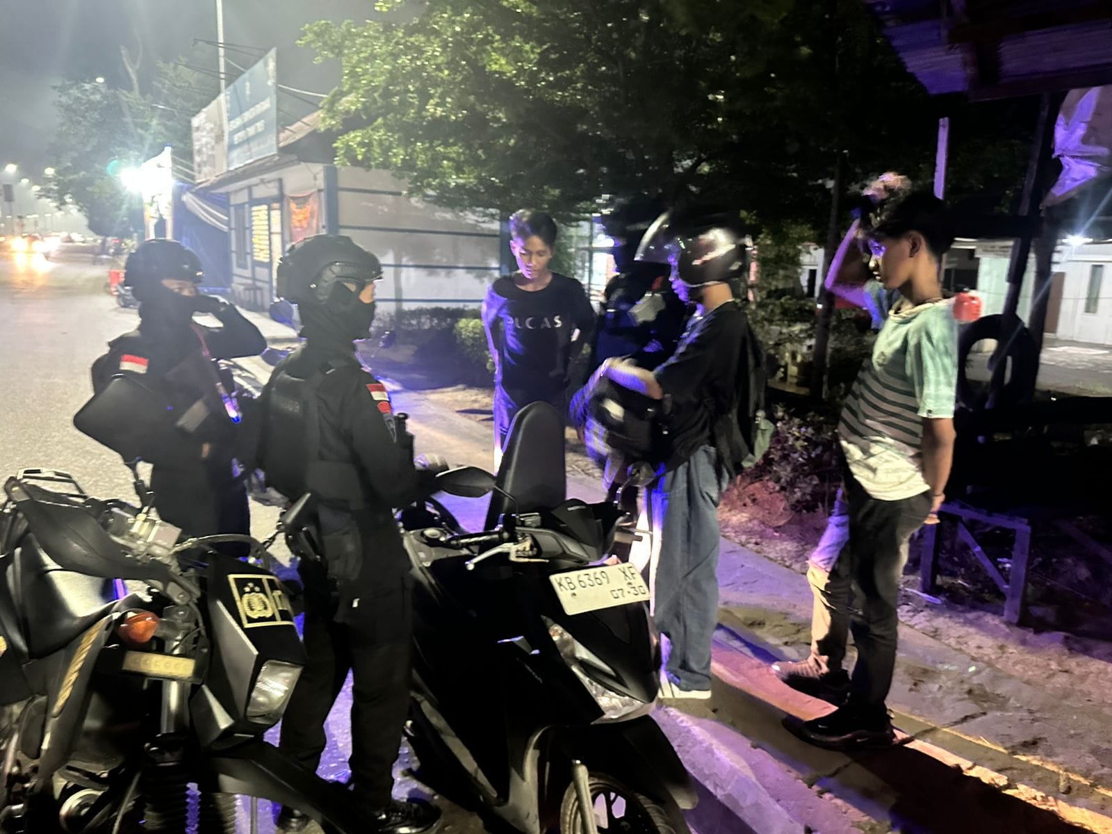 Satbrimob Polda Kalbar kembali menunjukan komitmennya dalam menjaga stabilitas kamtibmas dengan melaksanakan patroli ke sejumlah titik yang dianggap rawan akan terjadinya tindak kejahatan di kota maupun kabupaten di Provinsi Kalbar. Hari ini tim patroli harkamtibmas Satbrimob Polda Kalbar melaksanakan patroli di beberapa titik yang dianggap rawan akan terjadinya tindak kejahatan di Kota Pontianak dan kegiatan patroli ini merupakan langkah preventif yang dilakukan oleh Satbrimob Polda Kalbar yang bertujuan untuk memberikan rasa aman dan nyaman kepada masyarakat khususnya masyarakat yang sedang merayakan Hari Raya Idul Fitri 1447 H. Dipelaksanaan patroli kali ini, tim patroli harkamtibmas Satbrimob Polda Kalbar menemukan segerombolan remaja yang berkendara bonceng tiga yang kemudian langsung diberhentikan oleh tim dan langsung memberikan teguran pembinaan disiplin berupa tindakan fisik ringan yaitu push up ditempat. Brigpol Adi Nur Hardiyansah selaku dantim patroli harkamtibmas Satbrimob Polda Kalbar mengingatkan kepada para remaja tersebut untuk tidak mengulangi perbuatan mereka baik itu berkendara bonceng tiga maupun berkeliaran hingga larut malam. Ia juga menegaskan kepada para remaja tersebut bahwa keluar rumah pada jam rawan seperti ini dapat membuat mereka menjadi sasaran tindak kejahatan maupun berpotensi untuk mereka terlibat dalam aksi yang merugikan masyarakat banyak seperti tawuran, balap liar hingga aksi pembegalan. Tak hanya melakukan patroli ke beberapa titik yang rawan akan terjadinya tindak kejahatan, dipelaksanaan patroli kali ini tim juga menyambangi beberapa pos pengamanan Hari Raya Idul Fitri 1447 H Tahun 2026 Polresta Pontianak yang dimana sambang ini bertujuan untuk memastikan situasi di sekitar pos pengamanan tetap aman dan kondusif dan untuk memberikan dukungan moril kepada personel yang sedang melaksanakan tugas pengamanan. Kegiatan patroli yang dilaksanakan oleh Satbrimob Polda Kalbar ini merupakan upaya preventif dan responsif Polri dalam menjaga stabilitas kamtibmas di seluruh wilayah Indonesia khususnya di Provinsi Kalbar.