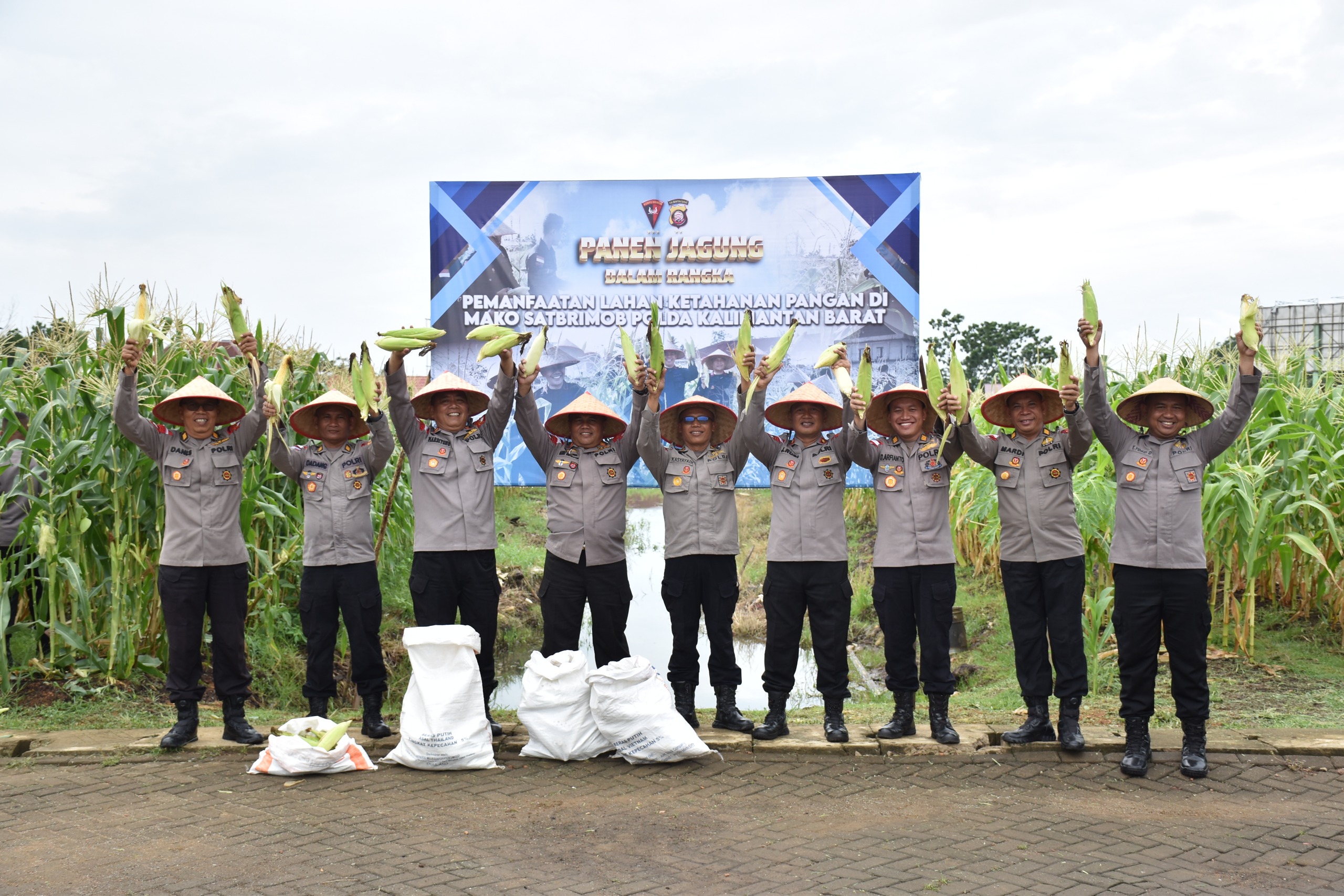 Danyon A Pelopor Satbrimob Polda Kalbar Kompol Jon Rubi Sugianto, S.A.P. bersama para perwira lingkungan Satbrimob Polda Kalbar melaksanakan kegiatan panen jagung yang ditanam memanfaatkan lahan tidur di Ksatriaan Soemarto Mako Satbrimob Polda Kalbar. Kegiatan panen ini merupakan hasil dari pemanfaatan lahan kosong yang sebelumnya tidak produktif yang kemudian dikelola secara maksimal oleh personel yang tinggal di Ksatriaan Soemarto. Panen jagung yang dilaksanakan oleh Satbrimob Polda Kalbar ini merupakan bentuk keseriusan institusi Polri dalam mendukung program Asta Cita pemerintah Indonesia menuju swasembada pangan nasional. Kegiatan panen jagung yang dilaksanakan oleh Danyon A Pelopor Satbrimob Polda Kalbar bersama perwira lingkungan Satbrimob Polda Kalbar ini juga menunjukan bahwa Satbrimob Polda Kalbar tidak hanya berperan menjaga keamanan dan ketertiban di Provinsi Kalbar saja melainkan juga mampu untuk berinovasi dan beradaptasi mendukung salah satu program positif pemerintah Indonesia.