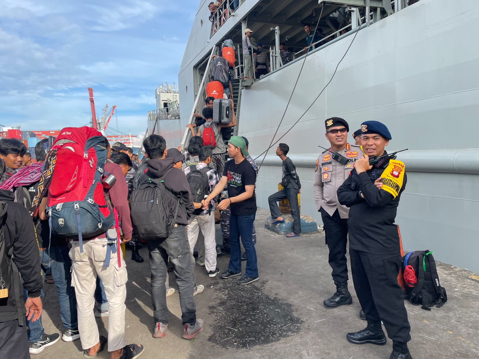 Dalam rangka memberikan rasa aman dan nyaman kepada peserta kongres HMI Ke-XXXII dan Munas Komati Ke-XXV mulai dari kedatangan, pelaksanaan hingga kepulangan Dansatbrimob Polda Kalbar Kbp M. Guntur, S.I.K., M.H. melakukan pengecekan di Pelabuhan Dwikora. Pengecekan yang dilakukan oleh Dansatbrimob Polda Kalbar adalah untuk memberikan pengamanan kepada para peserta kongres HMI Ke-XXXII dan Munas Komati Ke-XXV yang akan meninggalkan Provinsi Kalbar. Disini Dansatbrimob Polda Kalbar juga memberikan penekanan kepada para personel yang terlibat didalam pengamanan kepulangan peserta kongres HMI Ke-XXXII dan Munas Komati Ke-XXV untuk selalu waspada dan menjaga keselamatan satu sama lain mengantisipasi hal-hal yang tidak diinginkan terjadi pada saat mereka melakukan pengamanan kepulangan peserta kongres HMI Ke-XXXII dan Munas Komati Ke-XXV. Beliau juga berpesan untuk selalu mengedepankan pesan yang disampaikan oleh Kapolda Kalbar Irjen Pol. Pipit Rismanto, S.I.K., M.H. pada saat pelaksanaan apel gelar pengamanan HMI Ke-XXXII dan Munas Komati Ke-XXV yaitu mengedepankan kegiatan preemtif dan preventif pada saat kedatangan, pelaksanaan hingga kepulangan jangan sampai diakhir-akhir kegiatan pengamanan ini terjadi hal-hal yang kita bersama tidak inginkan.