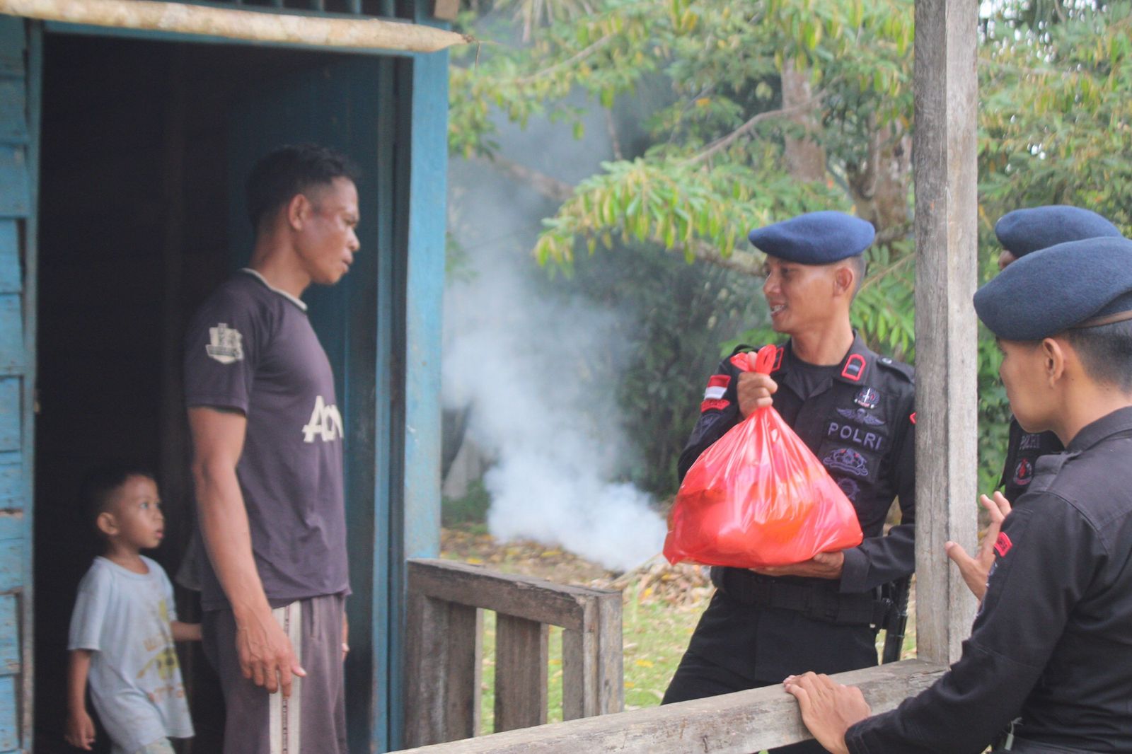 Satbrimob Polda Kalbar kembali melaksanakan kegiatan Jum’at Berkah dengan sasaran masyarakat kurang mampu di Provinsi Kalbar. Minggu kegiatan Jum’at Berkah dilaksanakan di Kabupaten Sintang dengan sasaran masyarakat yang kurang mampu di Desa Ransi Dakan. Dikegiatan Jum’at Berkah ini Ipda Iwan Rifai memberikan bantuan berupa sembako kepada masyarakat yang menjadi sasaran kegiatan Jum’at Berkah secara pintu ke pintu yang dimana ini bertujuan agar bantuan yang diberikan oleh Satbrimob Poda Kalbar bisa tepat sasaran. Ipda Iwan Rifai juga mengucapkan terimakasih kepada masyarakat Desa Ransi Dakan karena telah bersedia menerima bantuan yang mereka berikan dan berharap bantuan yang diberikan oleh Satbrimob Polda Kalbar ini bisa membantu meringankan dan bermanfaat bagi masyarakat yang menerimanya.