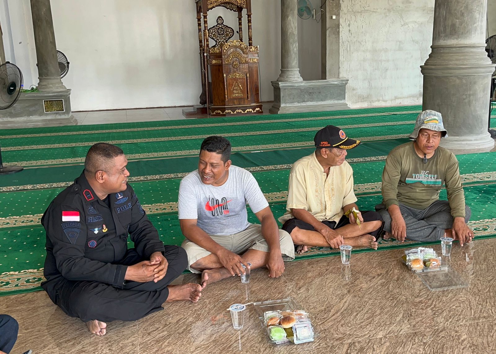 Satbrimob Polda Kalbar kembali melaksanakan kegiatan Jum’at Curhat ke masjid-masjid yang ada di Provinsi Kalbar. Minggu ini masjid yang menjadi sasaran kegiatan Jum’at Curhat Satbrimob Polda Kalbar adalah Masjid Nur Asma’ul Husna, Jl. Hayam Wuruk, Desa Suka Bangun, Kecamatan Delta Pawan, Kabupaten Ketapang. Kegiatan Jum’at Curhat yang dilaksanakan oleh salah satu jajaran Satbrimob Polda Kalbar ini merupakan program yang diinisiasi oleh Polri yang bertujuan untuk mendengarkan kritik, saran dan masukan langsung dari masyarakat dan juga merupakan cara Polri untuk membangun kedekatan dan kepercayaan masyarakat terhadap institusi. Dipelaksanaan kegiatan Jum’at Curhat ini personel tidak hanya berdialog dengan masyarakat dan pengurus masjid saja melainkan juga turut berpartisipasi untuk membersihkan area masjid guna membantu pengurus masjid mempersiapkan masjid untuk melangsungkan ibadah sholat Jum’at. Dipelaksanaan kegiatan ini, Wadanki IV Batalyon A Pelopor Satbrimob Polda Kalbar Ipda Hamid juga menyampaikan rasa terimakasihnya kepada pengurus masjid karena telah mempersilahkan mereka untuk melaksanakan kegiatan Jum’at Curhat di Masjid Nur Asma’ul Husna dan berkomitmen untuk menjadikan kritik, saran dan masukan dari pengurus masjid dan masyarakat kali ini sebagai motivasi untuk menjadi lebih profesional dalam bertugas.