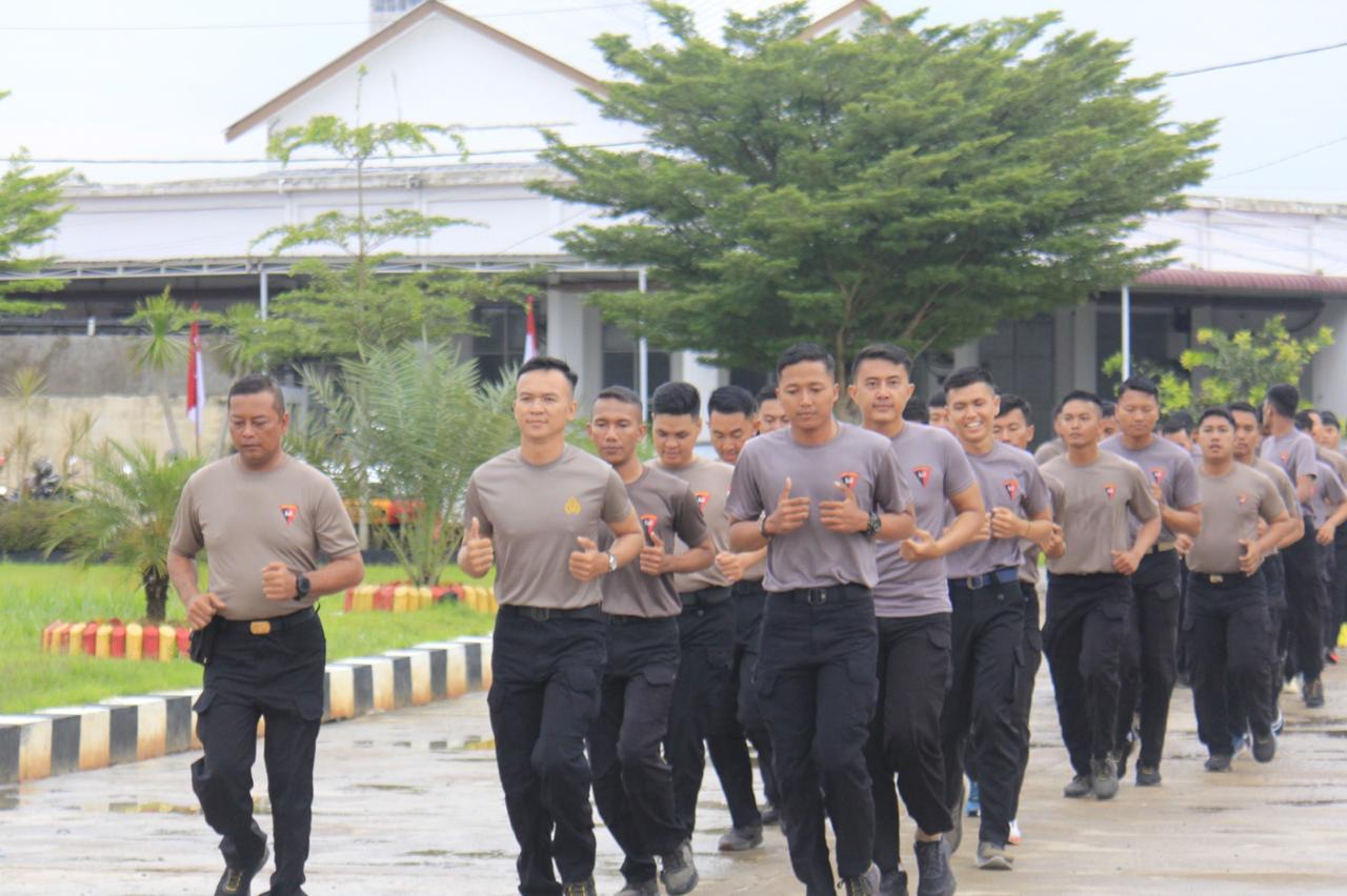 Kegiatan pembinaan fisik jajaran Satbrimob Polda Kalbar bantu para personelnya menjaga imunitas demi menunjang pelaksanaan tugas dilapangan. Selasa (20/08/24).