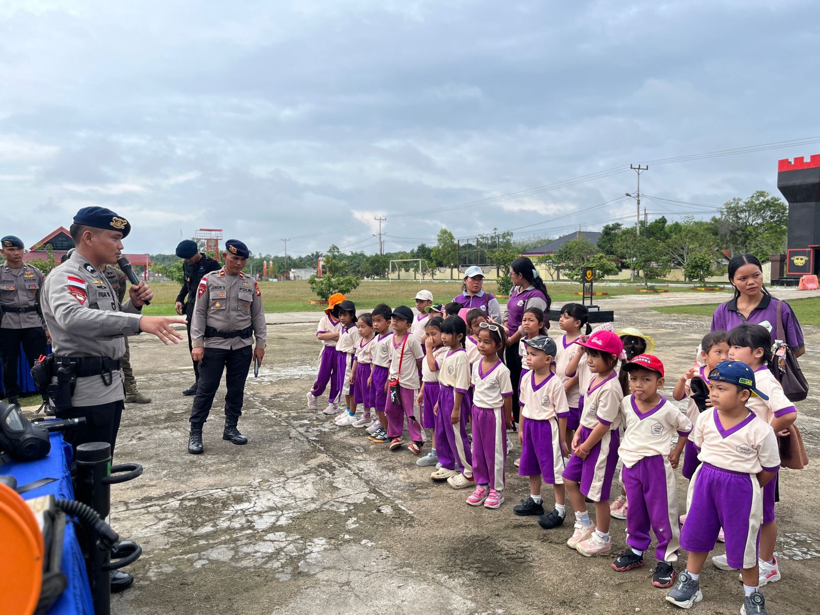 “Hari ini kami kembali menerima kunjungan edukasi dari salah satu sekolah di Kabupaten Sintang. Di kegiatan kunjungan ini kami mengajak anak-anak untuk berkeliling melihat berbagai macam almatsus dan kendaraan dinas yang biasa kami gunakan pada saat bertugas di lapangan. Kami mengucapkan terimakasih kepada para guru dari TK Bethel karena sudah memasukan Batalyon C Pelopor Satbrimob Polda Kalbar di daftar kunjungan edukasi sekolah mereka. Kami berharap kegiatan kunjungan edukasi anak-anak TK Bethel di Mako Batalyon C Pelopor Satbrimob Polda Kalbar ini bisa menambah wawasan dan pengetahuan anak-anak tentang tugas dan peran Brimob dalam menjaga keamanan dan ketertiban di lingkungan tempat tinggal mereka” ucap Ipda Firman, S.H..