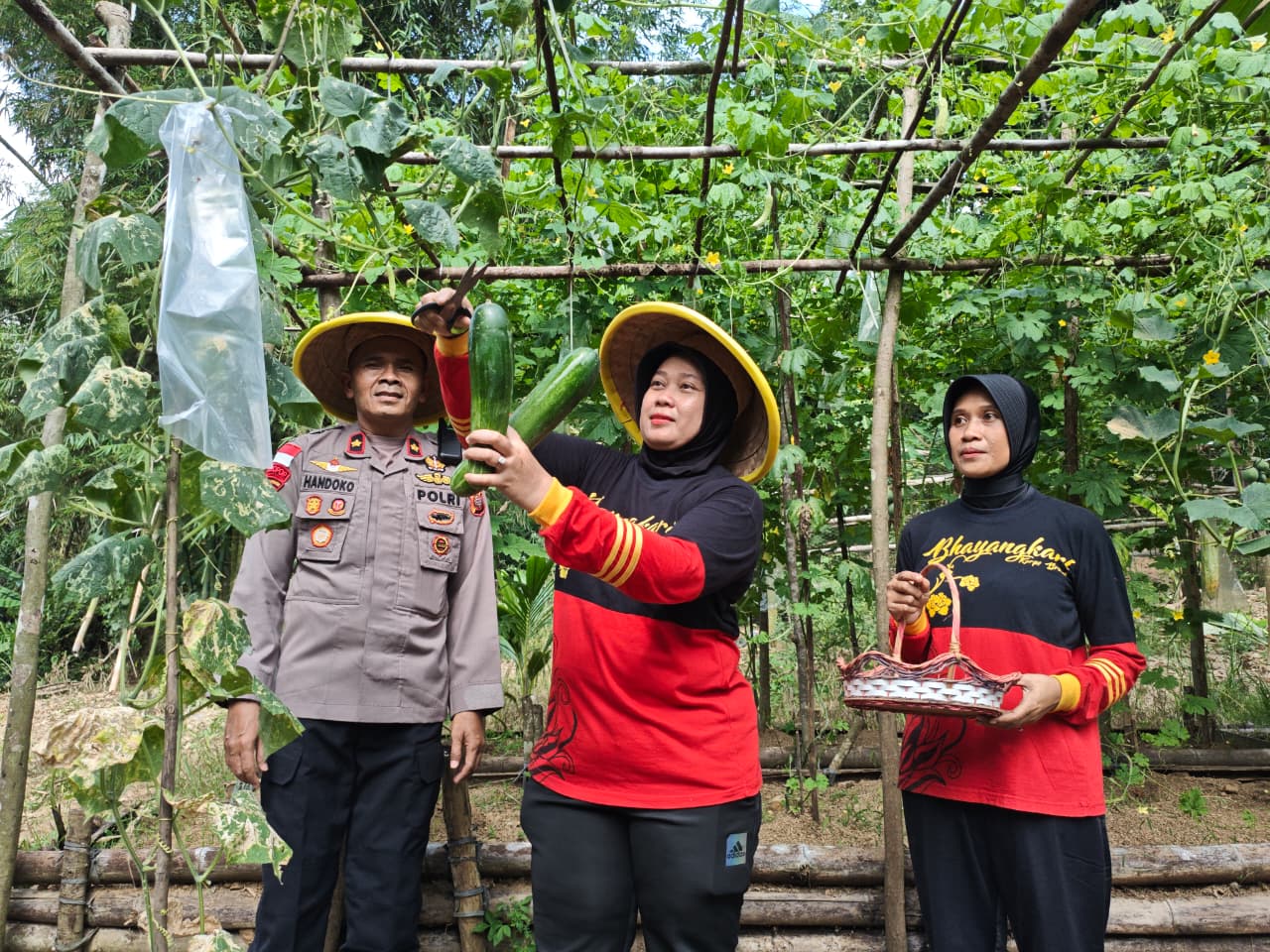 “Pemanfaatan lahan tidur yang kami laksanakan ini merupakan langkah Polri untuk mengoptimalkan potensi lahan yang sebelumnya tidak dimanfaatkan dimasing-masing ksatriaan dan mako menjadi lahan produktif yang ditanami berbagai jenis sayuran yang dapat menunjang kebutuhan sehari-hari personel. Hari ini kami bersama ibu-ibu bhayangkari melaksanakan panen berbagai jenis sayuran seperti timun, terong, jagung dan buah pepaya yang kami tanam dengan di pekarangan Pangan Lestari (P2L) Mako Batalyon B Pelopor Satbrimob Polda Kalbar. Nantinya hasil panen ini akan kami bagikan ke personel yang tinggal di Ksatriaan K.S. Tubun dan masyarakat yang tinggal dekat dengan lingkungan ksatriaan. Panen ini kembali menunjukan keseriuasan kami mendukung program Asta Cita pemerintah khususnya di bidang ketahanan pangan” ucap Wadanyon B Pelopor Satbrimob Polda Kalbar Kompol H. Sri Handoko, S.H., M.H..