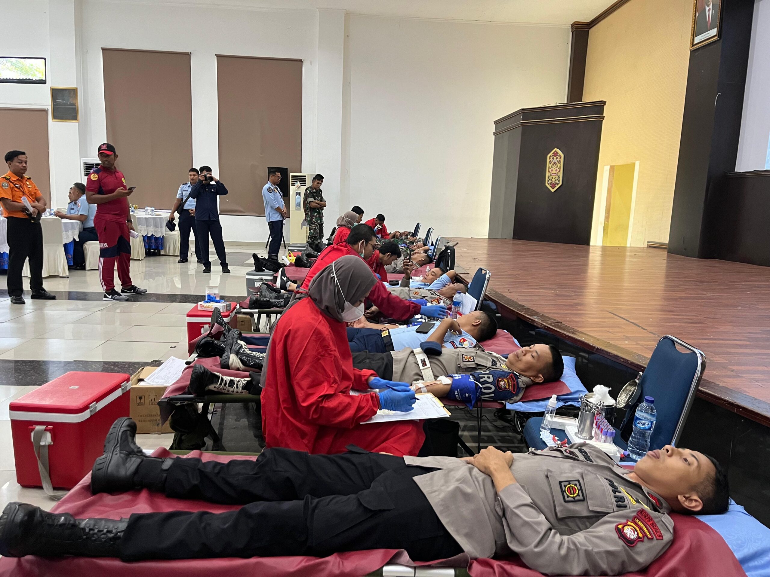 Satbrimob Polda Kalbar kembali berpartisipasi dikegiatan bakti sosial kesehatan donor darah yang diselenggarakan oleh TNI AU dalam rangka Hari Bakti Ke-77 TNI AU. Selasa (23/07/24).
