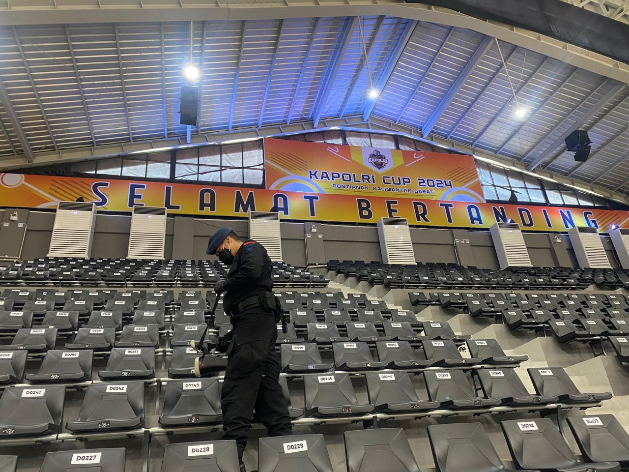 Polda Kalbar kembali dipercaya oleh Polri untuk menjadi tuan rumah pertandingan final turnamen bola voli Kapolri Cup 2024. Kepercayaan itu tentu tidak lepas dari kesiapan Polda Kalbar dalam memberikan keamanan dan kenyamanan kepada para atlet serta masyarakat yang menonton setiap pertandingan olahraga yang diselenggarakan diwilayah hukum Polda Kalbar. Demi tetap menjaga kepercayaan tersebut, Dansatbrimob Polda Kalbar Kbp Irwan Jaya, S.I.K. memerintahkan kepada seluruh personel Satbrimob Polda Kalbar untuk melakukan pengamanan baik itu pengamanan didalam lapangan maupun diluar lapangan. Kegiatan pengamanan ini bertujuan untuk memberikan rasa aman dan nyaman kepada para tamu undangan dan penonton yang ingin menyaksikan pertandingan final turnamen bola voli Kapolri Cup 2024 yang diselenggarakan di Gor Terpadu A. Yani Pontianak yang beralamat di Jl. Ahmad Yani, Kota Pontianak. Kegiatan pengamanan yang dilakukan oleh Satbrimob Polda Kalbar ini salah satunya adalah melakukan sterilisasi disekitar area tempat berlangsungnya turnamen bola voli Kapolri Cup 2024. Akp Sri Rubianto selaku perwira penanggung jawab pada kegiatan sterilisasi hari ini mengatakan bahwa kegiatan ini merupakan kegiatan wajib yang dilakukan oleh Satbrimob Polda Kalbar sebelum pelaksanaan acara-acara besar seperti salah satunya adalah turnamen bola voli Kapolri Cup 2024.