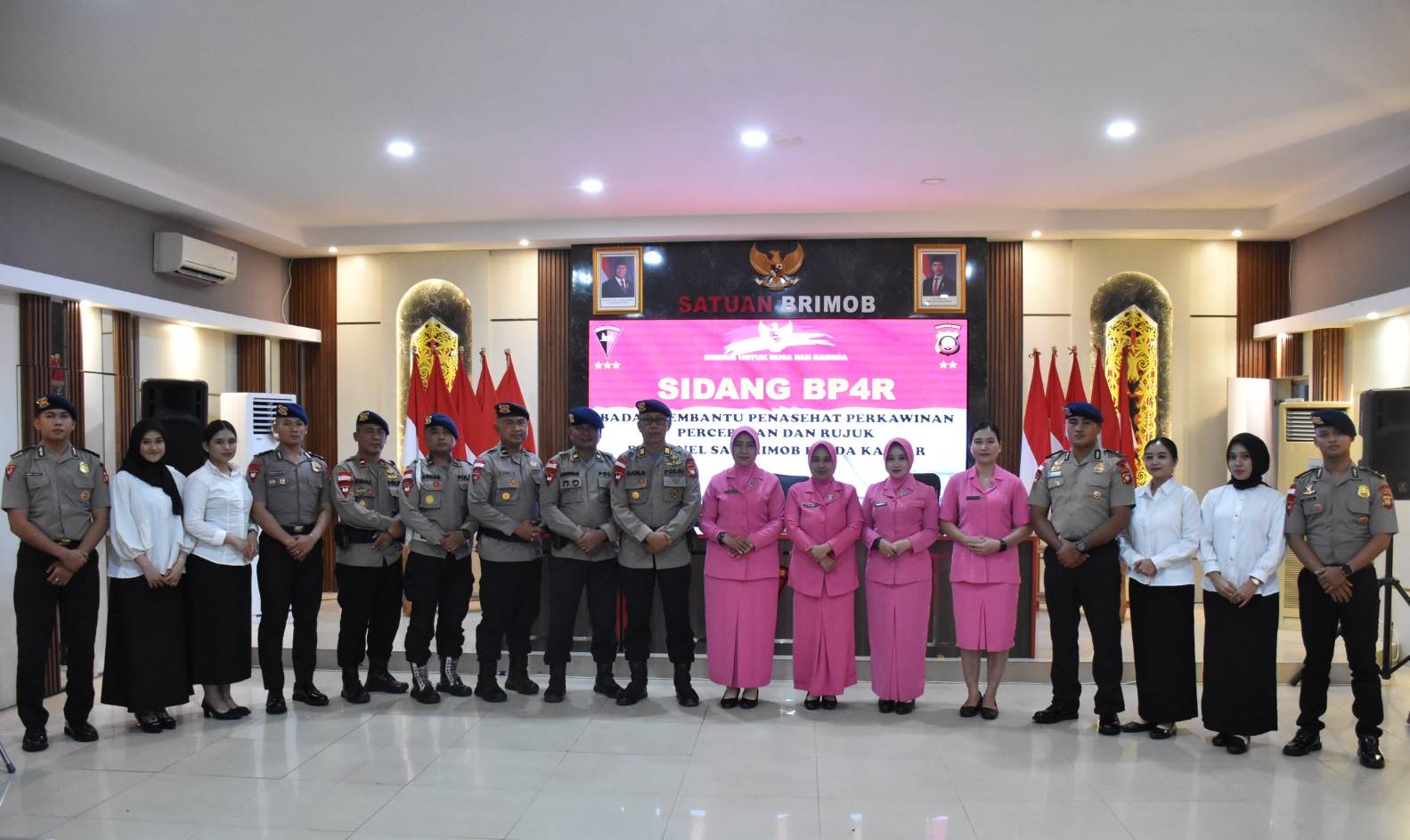 Satbrimob Polda Kalbar kembali menggelar sidang (Badan Pembantu Penasehat Perkawinan Perceraian dan Rujuk) terhadap 8 personelnya yang akan melangsungkan pernikahan. Sidang BP4R (Badan Pembantu Penasehat Perkawinan Perceraian dan Rujuk) merupakan sidang yang diadakan dilingkungan Polri yang dimana ini merupakan bagian dari proses persiapan pernikahan bagi personel Polri yang bertujuan untuk memberikan pembekalan, nasihat, dan memastikan kesiapan personel dan calon pasangannya sebelum mereka menikah. Sidang BP4R (Badan Pembantu Penasehat Perkawinan Perceraian dan Rujuk) ini merupakan salah satu syarat yang harus dipenuhi oleh setiap personel Polri sebelum mereka melangsungkan pernikahan, sesuai dengan Peraturan Kapolri Nomor 9 Tahun 2010. Pelaksanaan kegiatan Sidang BP4R (Badan Pembantu Penasehat Perkawinan Perceraian dan Rujuk) kali ini dipimpin oleh Ps. Kasubbagrenmin Satbrimob Polda Kalbar Akp Dani Suroso dan dihadiri oleh PJ Ketua Bhayangkari Ranting Detasemen Gegana Cabang Satbrimob Daerah Kalimantan Barat Ny. Peny Agus Suprapto. Dipelaksanaan Sidang BP4R (Badan Pembantu Penasehat Perkawinan Perceraian dan Rujuk) ini personel serta calon pasangannya diberi pembekalan dan nasehat seperti tugas dan tanggung jawab calon pasangan mereka sebagai personel Polri khususnya Brimob, dan juga tugas mereka sebagai calon Bhayangkari. Dipelaksanaan Sidang BP4R (Badan Pembantu Penasehat Perkawinan Perceraian dan Rujuk) ini PJ Ketua Bhayangkari Ranting Detasemen Gegana Cabang Satbrimob Daerah Kalimantan Barat juga memastikan kesiapan mental dan spiritual personel dan calon pasangannya dalam menghadapi kehidupan pernikahan, termasuk tantangan dan tanggung jawab yang akan mereka hadapi dalam berumah tangga kedepan.