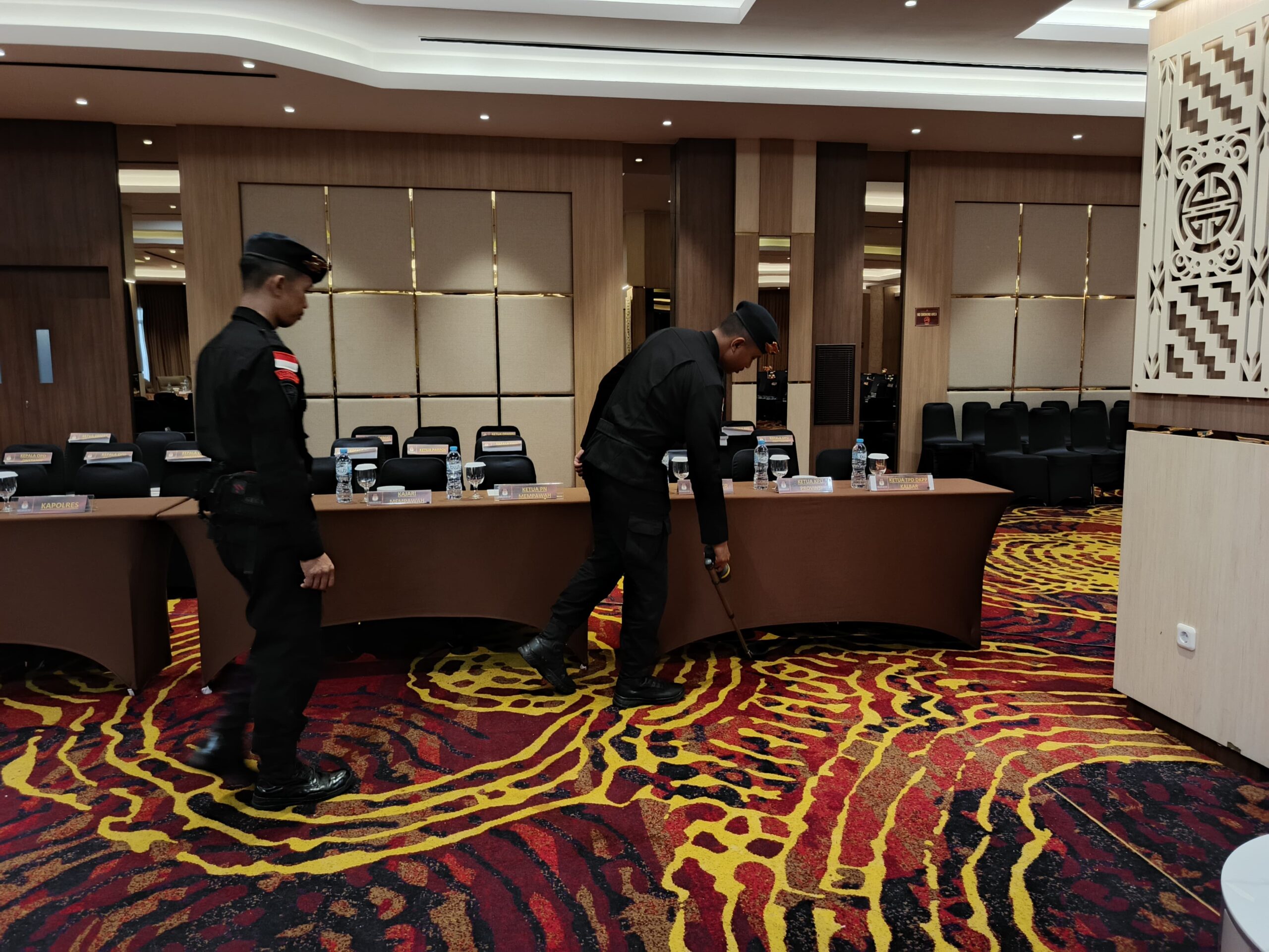 “Kegiatan sterilisasi ini memang kegiatan wajib yang kami lakukan apabila di kota ataupun kabupaten di Provinsi Kalbar yang akan melaksanakan ibadah maupun acara besar lainnya. Kami sudah melakukan pengecekan mulai dari pengecekan didalam tempat pelaksanaan sampai diluar dan alhamdulillah tidak ditemukan barang-barang yang mencurigakan. Nantinya kami akan melakukan patroli disini dilingkungan tempat pelaksanaan rapat dengan tujuan untuk memastikan kembali keamanan selama pelaksanaan rapat berlangsung” ucap Ipda Dian Afrianto.