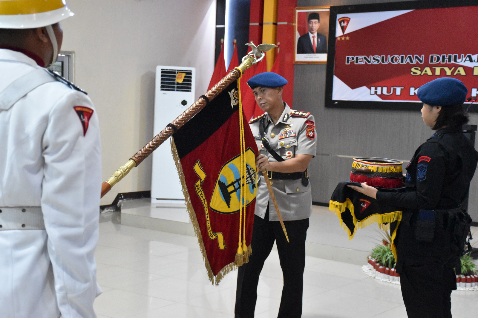 Dalam rangka menyambut HUT Korps Brimob Polri Ke 78 yang jatuh pada tanggal 14 November mendatang, Satbrimob Polda Kalbar laksanakan pensucian dhuaja Satya Pandi Pratistha di aula Satya Haprabu Mako Satbrimob Polda Kalbar. Pelaksanaan pensucian dhuaja ini dipimpin langsung oleh Dansatbrimob Polda Kalbar Kbp M. Guntur, S.I.K., M.H. dan dihadiri oleh seluruh pejabat utama jajaran Satbrimob Polda Kalbar. Tradisi pensucian dhuaja ini sebagai bentuk pemuliaan nilai-nilai luhur atau sebagai wujud rasa nasionalisme dan pelestarian budaya nusantara serta merupakan tradisi turun temurun yang dilakukan oleh Korps Brimob Polri. Pensucian dhuaja ini mempunyai makna yaitu untuk menjaga kesucian, kesetian, kemampuan dan berorientasi untuk kepentingan bangsa dan negara. Pada pelaksanaan kegiatan pensucian dhuaja pagi hari ini Dansatbrimob Polda Kalbar juga berpesan untuk tidak bosan-bosannya memberikan pengabdian terbaik kepada masyarakat bangsa dan negara. Selain itu beliau juga berpesan kepada seluruh personel yang hadir pada pelaksanaan pensucian dhuaja untuk selalu menjaga nama baik institusi Polri dengan cara tidak melakukan pelanggaran sekecil apapun yang dapat menciderai nama baik institusi Polri khususnya Satbrimob Polda Kalbar di masyarakat.
