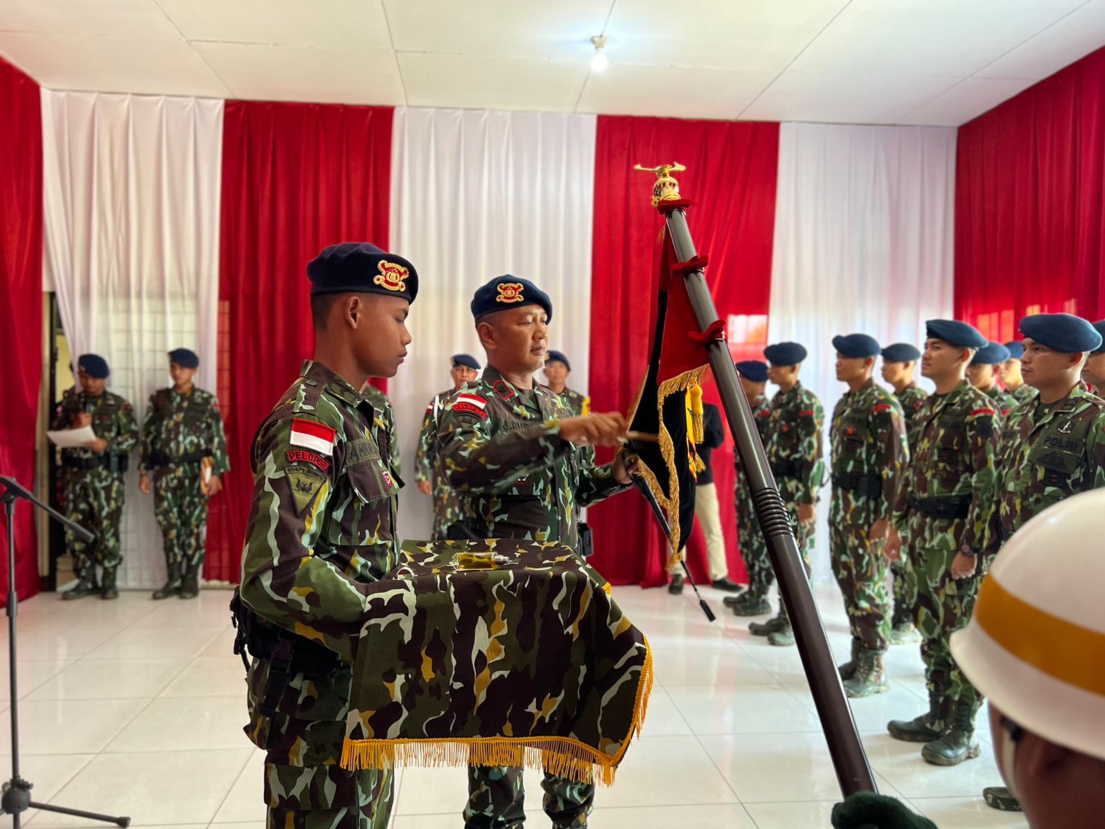 Danyon A Pelopor Satbrimob Polda Kalbar Kompol Jon Rubi Sugianto, S.A.P. memimpin pelaksanaan upacara tradisi pensucian dhuaja Satya Pawitra Lenggana memperingati Hut Pasukan Pelopor ke 64. Rabu (13/09/23)