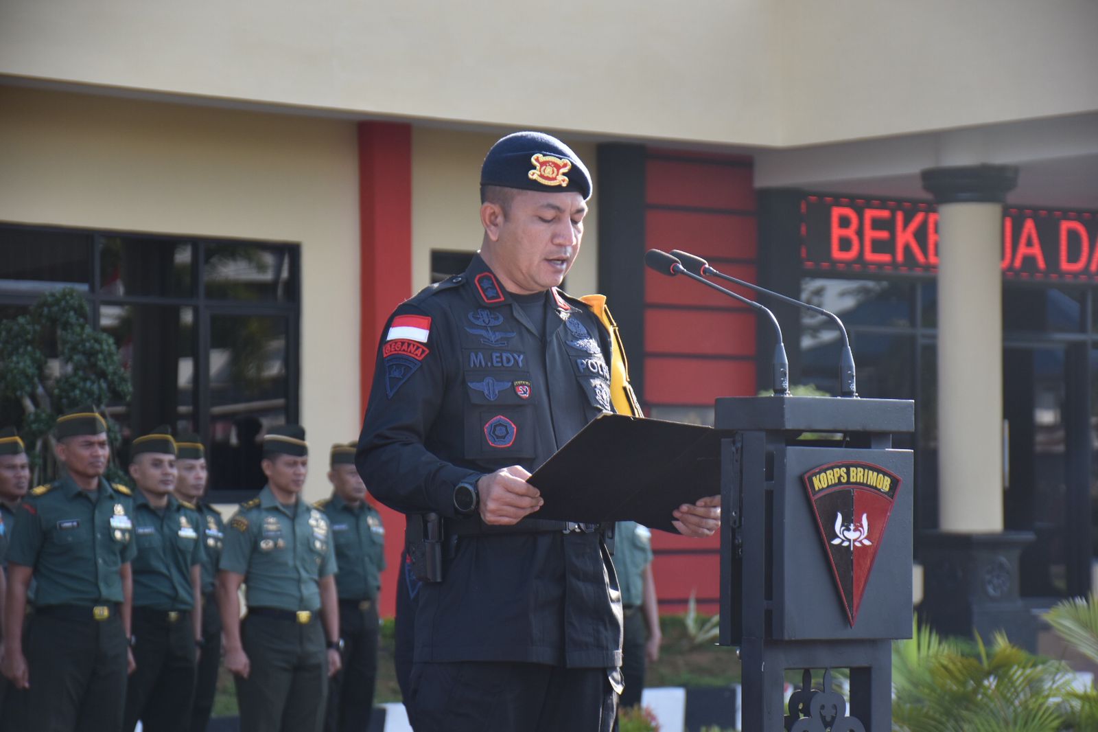 Upacara Hari Kesadaran Nasional (HKN) Satbrimob Polda Kalbar bersama dengan personel TNI di Mako Satbrimob Polda Kalbar. Senin (18/12/23).