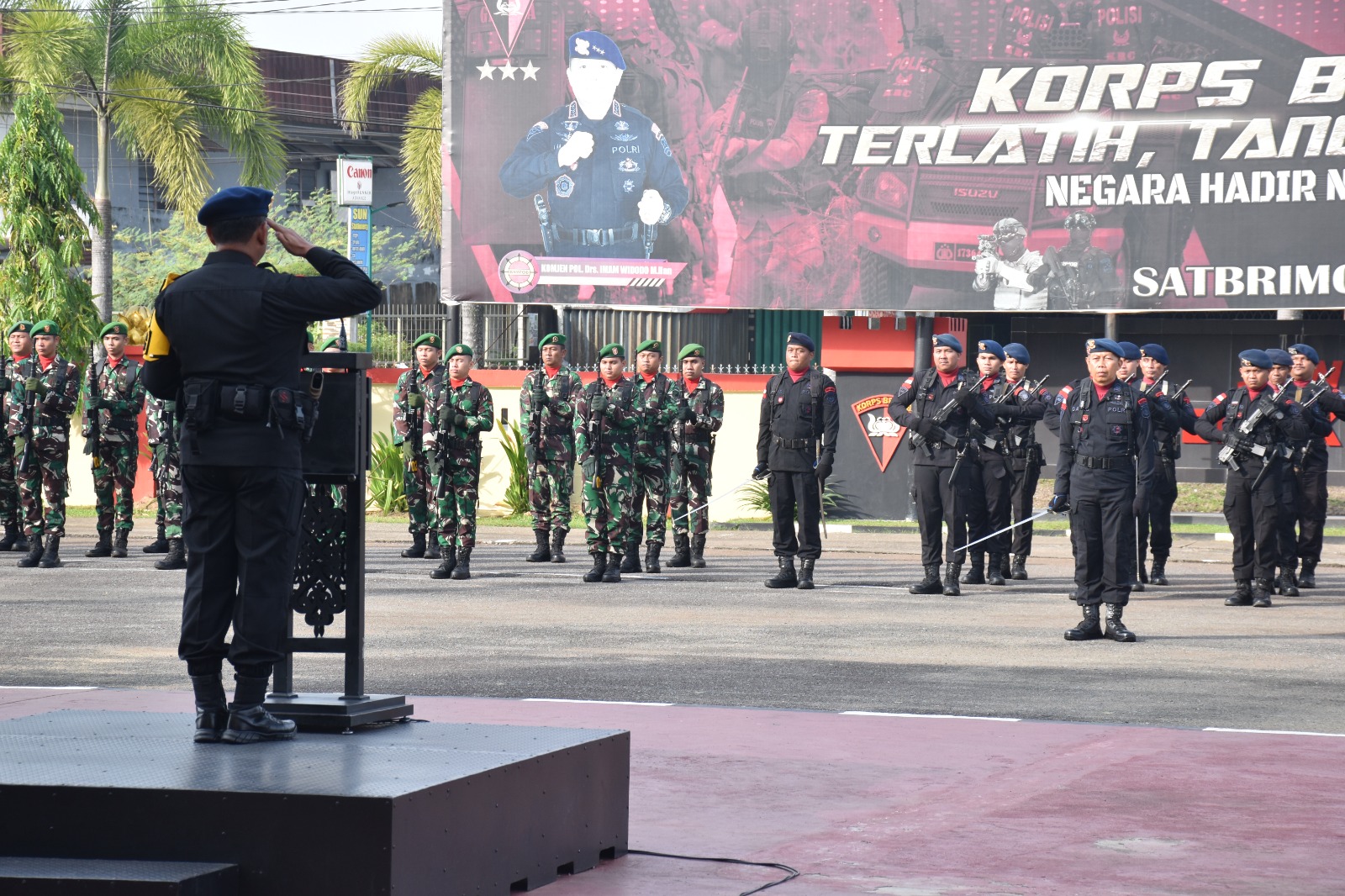 Upacara Hari Kesadaran Nasional (HKN) Satbrimob Polda Kalbar bersama dengan personel Kodam XII/Tpr di Mako Satbrimob Polda Kalbar. Selasa (17/09/24).