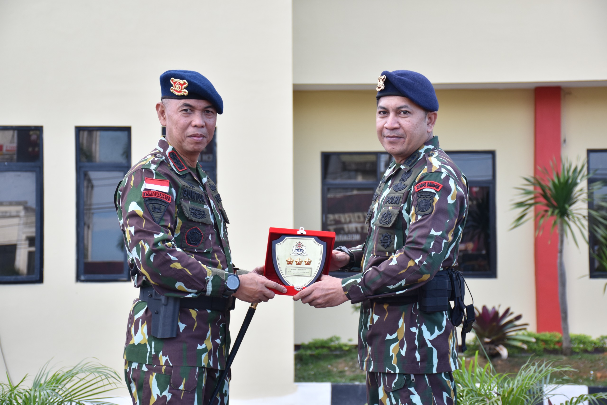Dansatbrimob Polda Kalbar Kbp M. Guntur, S.I.K., M.H. memimpin langsung pelaksanaan upacara penyerahan jabatan Wadansatbrimob Polda Kalbar Akbp Murjatmo Edi, S.I.K., S.H. yang dilaksanakan di Mako Satbrimob Polda Kalbar. Kegiatan upacara penyerahan jabatan pada pagi hari ini dihadiri oleh seluruh perwira dijajaran Satbrimob Polda Kalbar dan diikuti oleh seluruh personel Satbrimob Polda Kalbar. Pada pelaksanaan upacara penyerahan jabatan ini Dansatbrimob Polda Kalbar mengucapkan banyak terimakasih dan penghargaan setinggi-tingginya kepada Akbp Murjatmo Edi, S.I.K., S.H. atas segala pegabdian dan dedikasinya selama ini selama menjabat menjadi Wadansatbrimob Polda Kalbar. Beliau juga mengucapkan selamat atas amanah jabatan baru yang diberikan kepada Akbp Murjatmo Edi, S.I.K., S.H. sebagai Kepala Bidang Pemberantasan dan Intelejen BNN Provinsi Kalbar serta mendo’akan semoga Akbp Murjatmo Edi, S.I.K., S.H. diberikan kelancaran serta dipermudah dalam melaksanakan tugas ditempat yang baru. Ucapan terimakasih juga tidak lupa disampaikan oleh Dansatbrimob Polda Kalbar kepada Ny. Dhany Murjatmo Edi atas pengabdian dan dedikasinya serta perannya dalam membimbing dan membantu ketua Bhayangkari cabang Satbrimob Polda Kalbar.